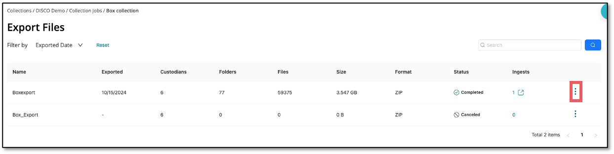 - Click into the Collection Job by clicking on the Name. Then click into the Exports tab.