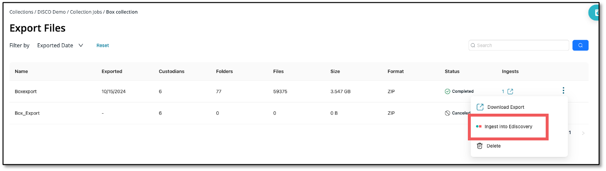 - Click Ingest into Ediscovery.